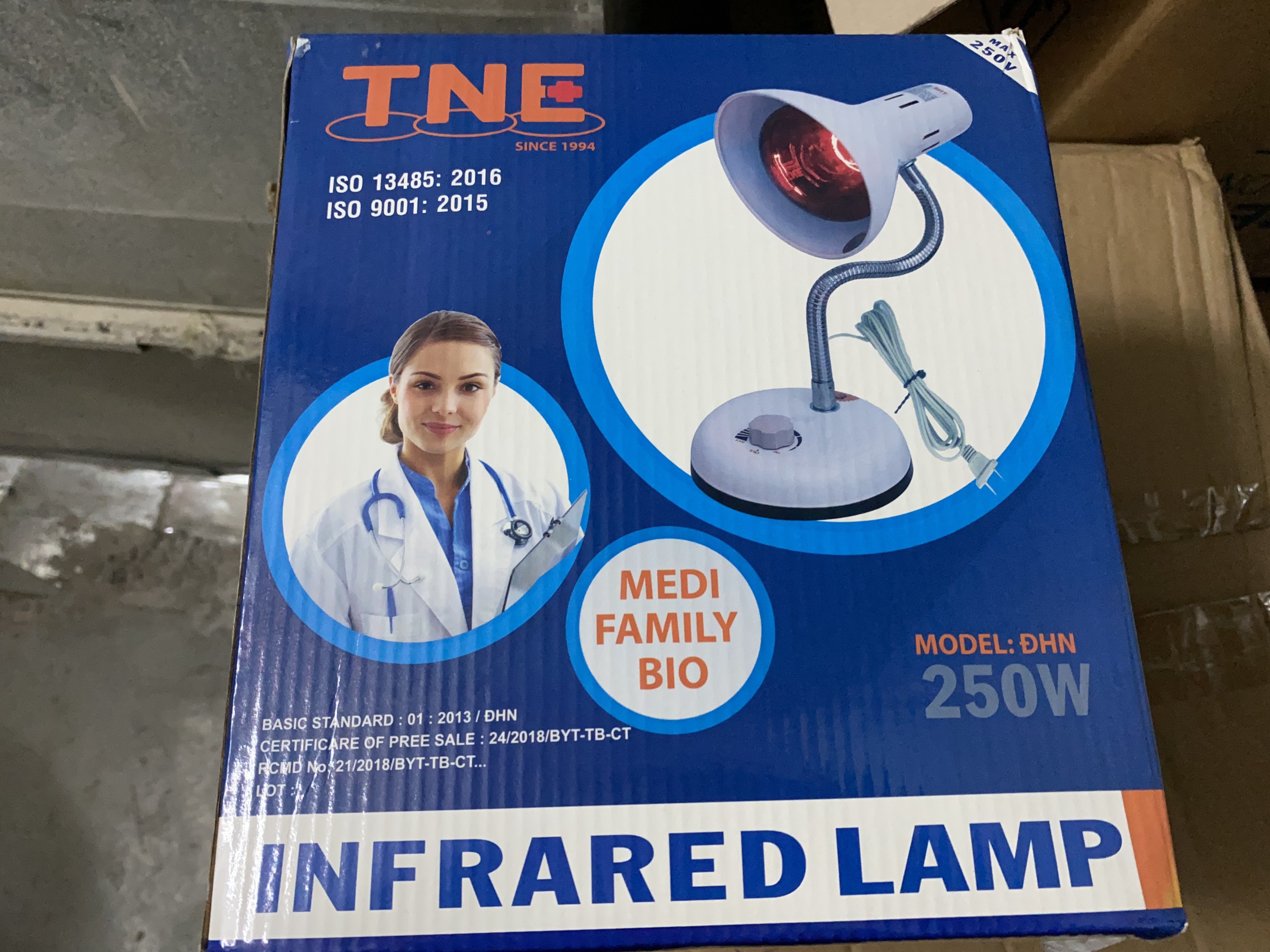 .Đèn hồng ngoại TNE được sản xuất trong nước và sản phẩm này chuyên.phục vụ trong ngành y tế với chất lượng cao bảo hành 3 năm không.bảo hành bóng đèn. Tuy nhiên nếu sử dụng đúng phương pháp thì bóng.có thể sử dụng lâu từ 2 đến 4 năm.. . Nguyên lý hoạt động của đèn là sử dụng phương pháp nhiệt đơn sắc.dùng để kích thích chuyển hóa và tăng cường sự trao đổi chất cũng.như chống lại một số nấm và vi khuẩn có hại cho da và protein của.cơ thể người. Tăng cường lưu thông máu, chống lại sự tắt một số.mạch máu gây đau nhứt cho cơ thể.. .Đèn hồng ngoại sử dụng trong y tế có tác dụng như sau:. .Giãn mạch máu, đau thắt cơ:.Dùng trong thoát vị đĩa đệm lưng cổ:.Chống đau khớp:.Chống viêmda.Giảm căng thẳng thần kinh:.Rối loạn chuyển hóa: Đèn hồng ngoại có chức năng điều chỉnh rối.loại thần kinh thực vật, rối loạn chuyển hóa và rối loạn dinh dưỡng.tại chổ.. Chống vàng da trẻ sơ sinh:.Trẻ em còi xương chậm lớn:.Làm lành nhanh các vết mổ.Chống lại tác nhân gây mụn: -Khi sử dụng đèn hồng ngoại, khoảng cách tối đa khi sử dụng là từ.30cm đến 80cm là hợp lý.. .